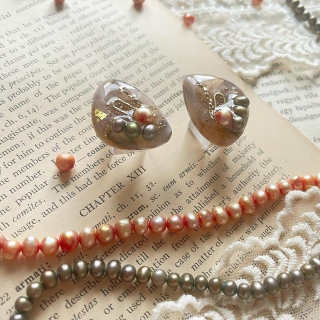 イヤリング レジン 優しいピンクとシェルを詰め込んだイヤリング♡